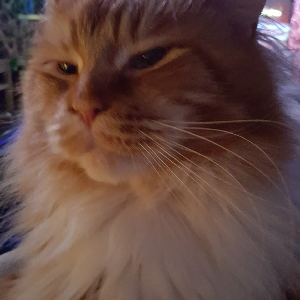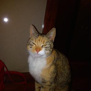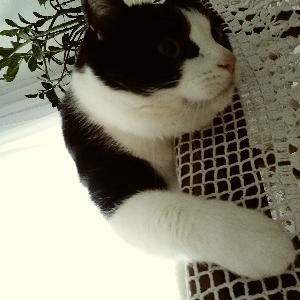 Uwielbia całymi dniami spać, jak by mógł to w ogole nie wychodził by z łóżka- oczywiście tylko po to aby zjeść, bo .w końcu to 7kg nie wzięło się z powietrza. Jest dość wybredny i sam stawia warunki kto moze go głaskać. Odkąd jest z nami wprowadzil do domu wiele radości, prowadząc dyskusje gdyz jest dosc nerwowy kiedy miska jest pusta. Zimne mleko? Nigdy w życiu, preferuje tylko podgrzane w mikrofalowce do odpowiedniej temperatury bo za gorącego nie ruszy. Lubi sprawiac nam żarty i sprowadza do domu wspólokatorow- myszy, oczywiście zywe gdyz on sobie łap nie brudzi tylko sie chwali zdobyczą a my mamy problem ze złapaniem jej. Wabi sie kiciuś bo na nic lepszego nie wpadlismy a na to najlepiej reagował. Oto i on nasz wybredny grubasek.